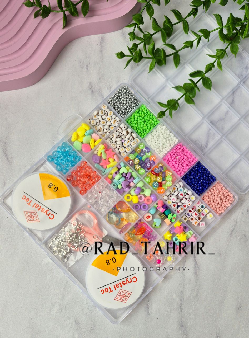 پک ملزومات ساخت دستبند و اکسسوری با دو رول نخ مخصوصناموجود