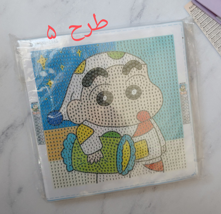 هر پک شامل ابزارهای نقاشی الماسی و الماسهای رنگی ه هر کدام جدا بستهبندی شده و طبق اعداد روی نقاشی الماسی باید جایگزین شود