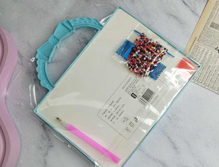 هر پک شامل نگین ها ، وکس برای چسبناک کردن قلم و خود قلم و نقاشی الماسی و قاب دسته دار میباشد