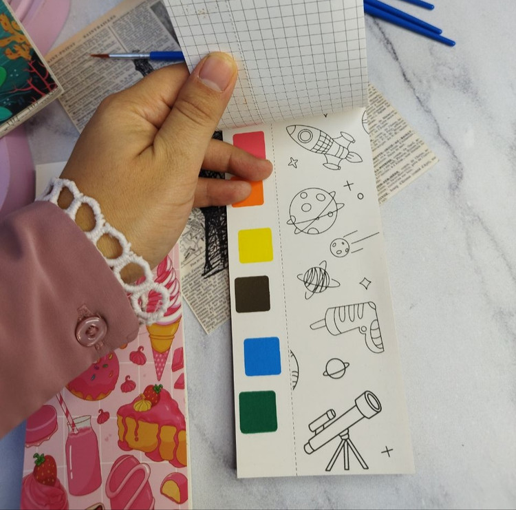 قیمت هر دفترچه به همراه آبرنگ و قلمو فقط ۷۵