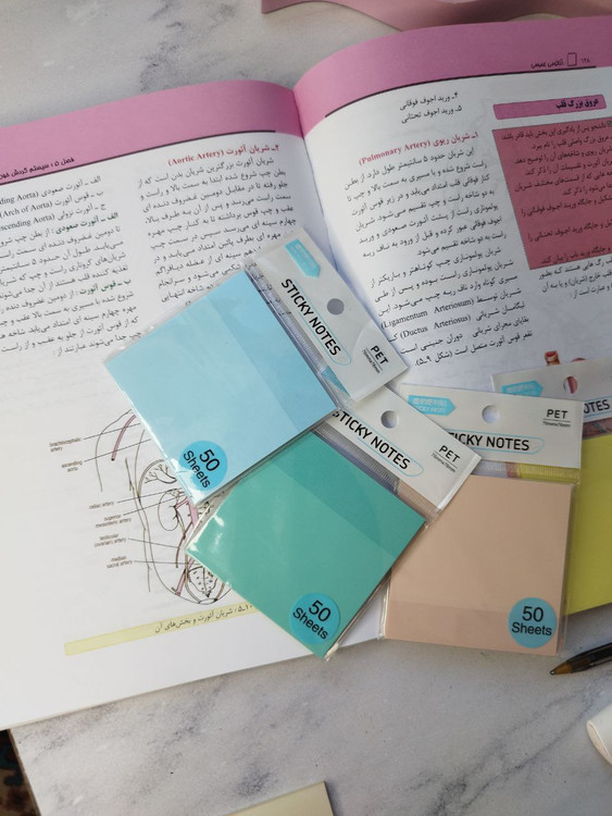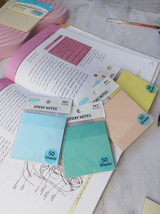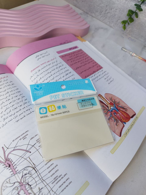 یا برای زمانی که میخوای روی کتاب یا هایلایت بکشی ولی نمیخوای کتاب کثیف بشه فقط کافیه یک ورق استیک نوت شفاف رو اون قسمت بزارید