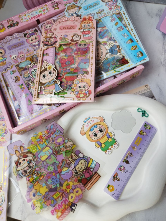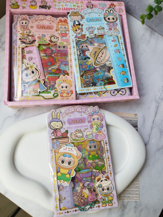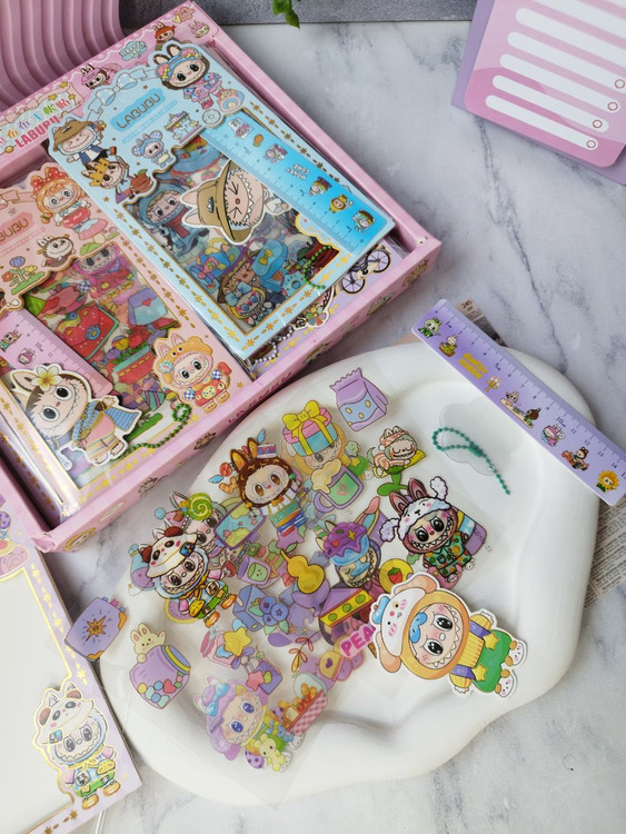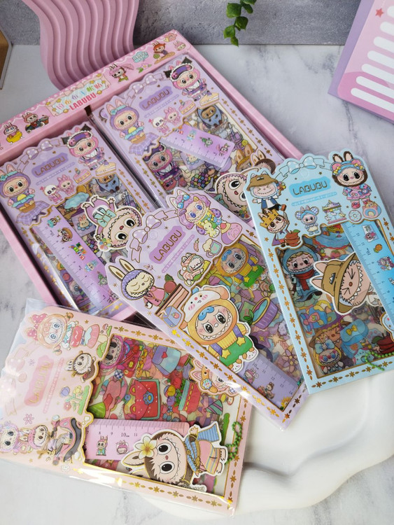 پک هدیه استیکری به همراه خطکش و آویز لبوبو