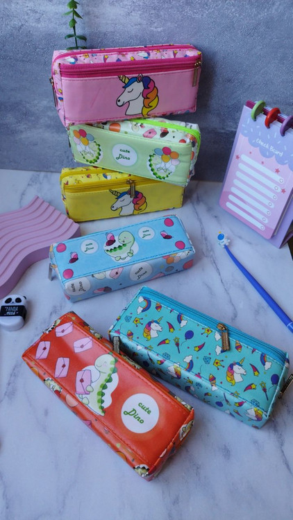 جامدادی سه زیپ چرمی با طرح های کیوت و اقتصادی