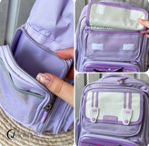 رنگ اصلی کوله پشتی، بنفش روشن و لطیف است که باعث جذابیت بیشتر آن میشود. طرح کارتونی کرومی روی کیف مدرسه کرومی ، شامل یک شخصیت کرومی است که با کلاه مشکی و لباسی منحصر به فرد، توجه همه را به خود جلب میکند. این طراحی، باعث شادی و لذت بخشیدن به دانشآموزان میشود.
