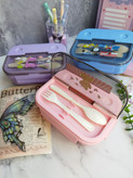 ظرف غذای سه قسمته وارداتی همراه قاشق و چنگال