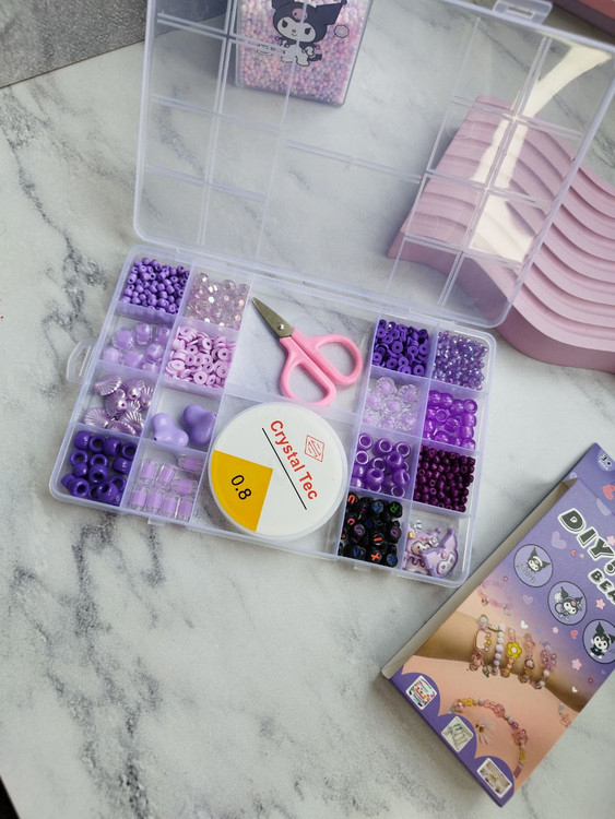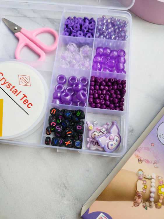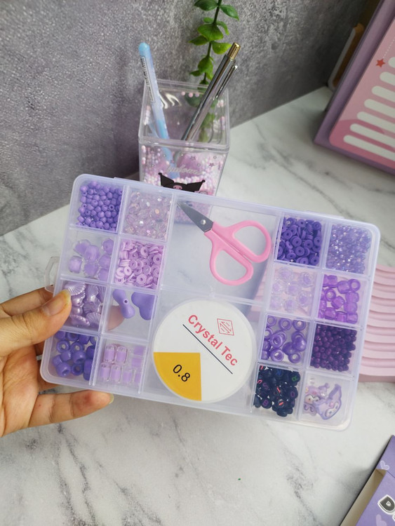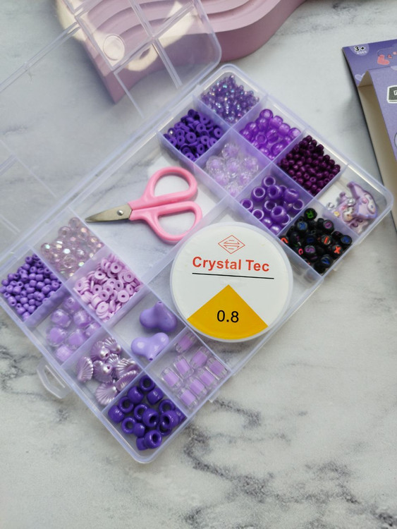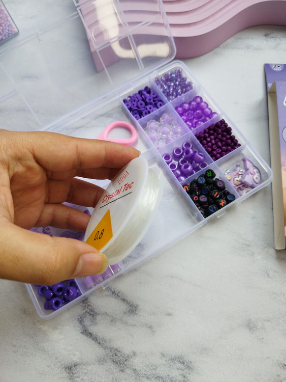 به همراه یک رول نخ مخصوص ساخت دستبند و یک قیچی