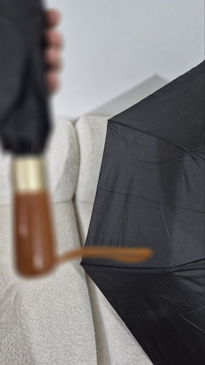 چتر اتوماتیک جمع شونده مشکی با دسته قهوه ای مقاوم به باد