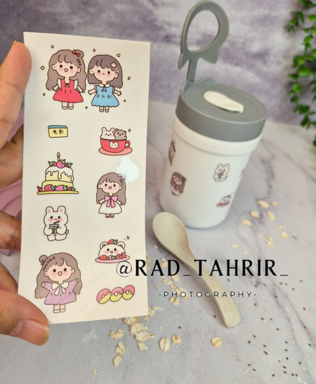 همراه قاشق و یک ورق استیکر برای تزئین