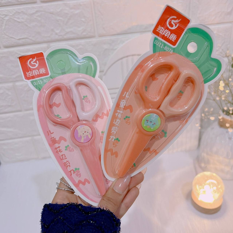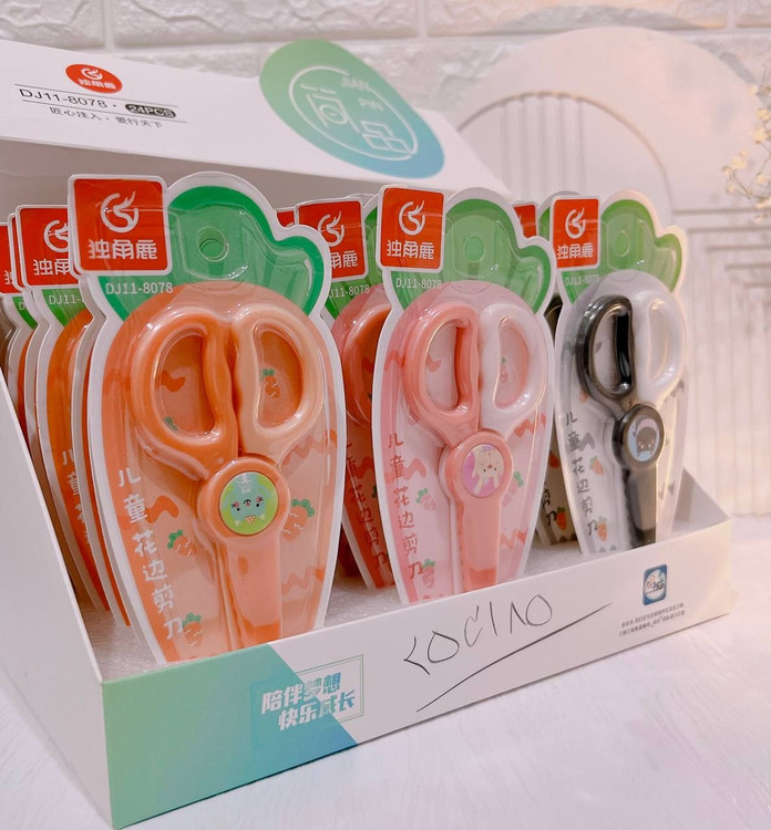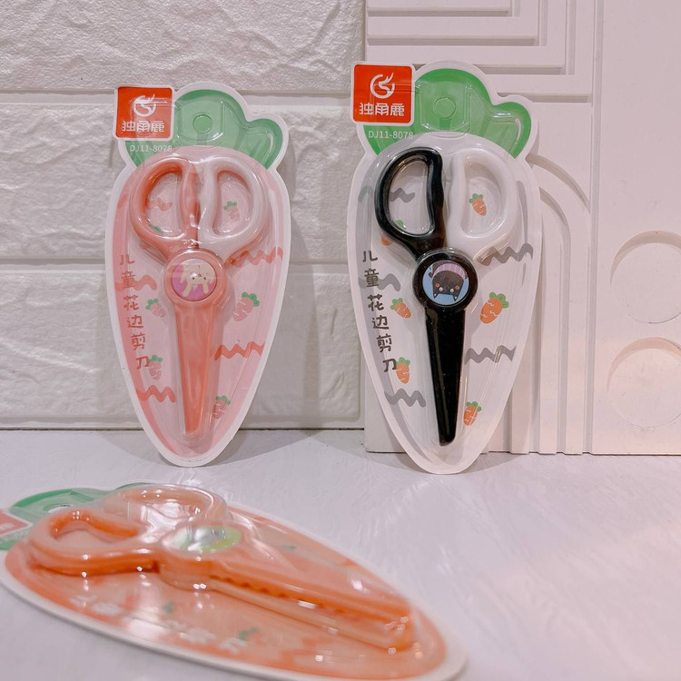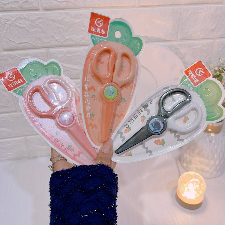 این قیچی تیغه فلزی ندارد و برای بچهها بسیار مناسب است همچنین برش ساده نیست و به صورت دالبری برش میزند